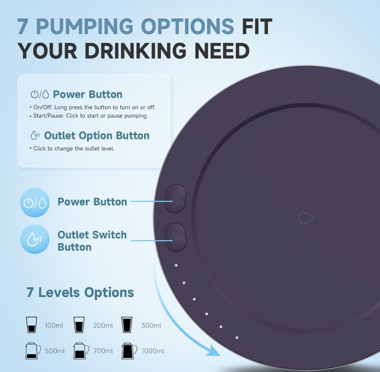 ✅ Funciona con batería recargable, ofreciendo agua con solo presionar un botón.