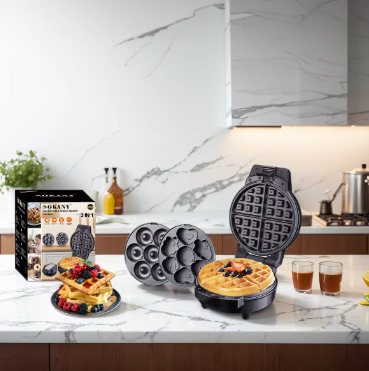 Nuestra máquina de waffles 3 en 1 SK-08006 es la opción perfecta para hacer waffles en casa. Con su diseño versátil, puede hacer waffles clásicos, cuadrados o en forma de corazón. Además, su superficie antiadherente y su indicador de temperatura garantizan resultados perfectos en cada uso. Disfruta de deliciosos waffles caseros con nuestra máquina 3 en 1.