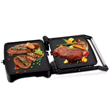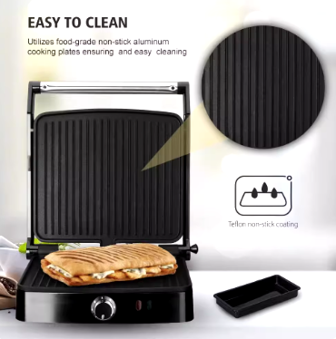 Las superficies de cocción son antiadherentes, facilitando la limpieza y asegurando que los alimentos no se peguen al grill.